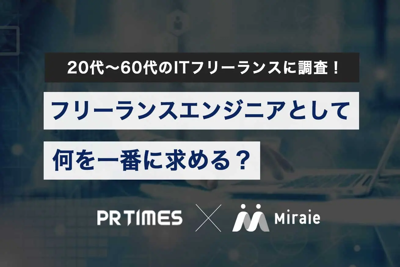 株式会社Miraie(本社所在地:東京都渋谷区、代表取締役:岡野 徹志)は、20代~60代のフリーランスITエンジニアを対象に、「フリーランスエンジニアとして働く上で求めること」に関する調査を実施しました。