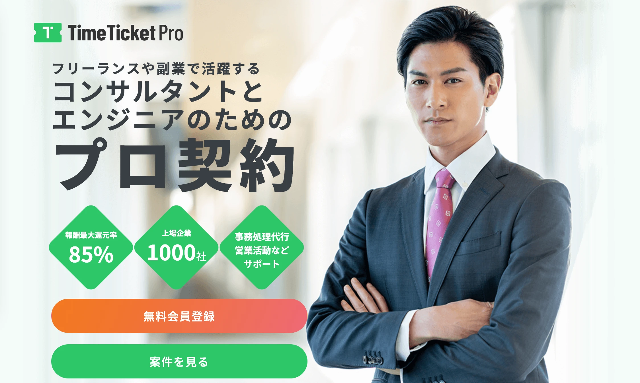 Time Ticket Proとは、株式会社タイムチケットが運営するフリーランスエンジニアやデザイナーのための案件紹介サイトです。
