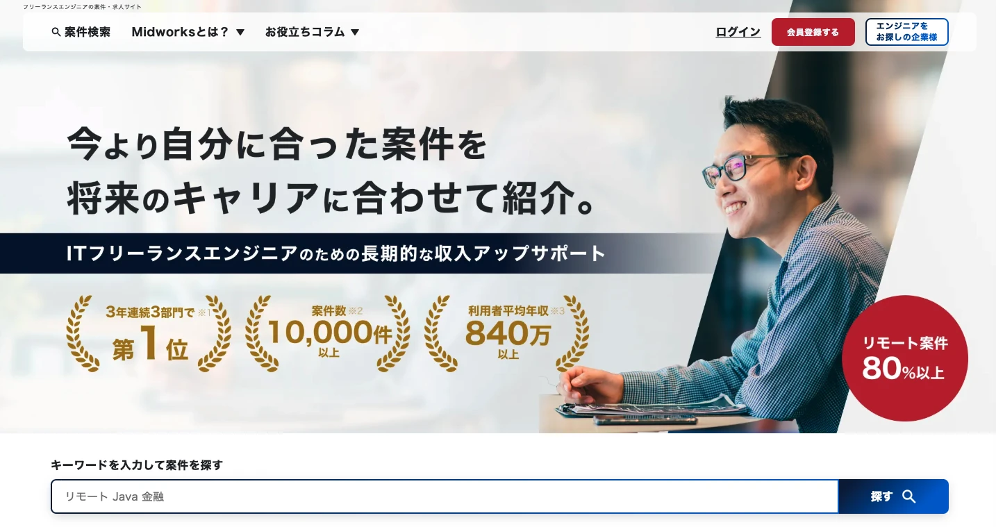 Midworksは、株式会社Branding Engineerが運営するIT系のフリーランスエンジニア、デザイナー専門のエージェントです。