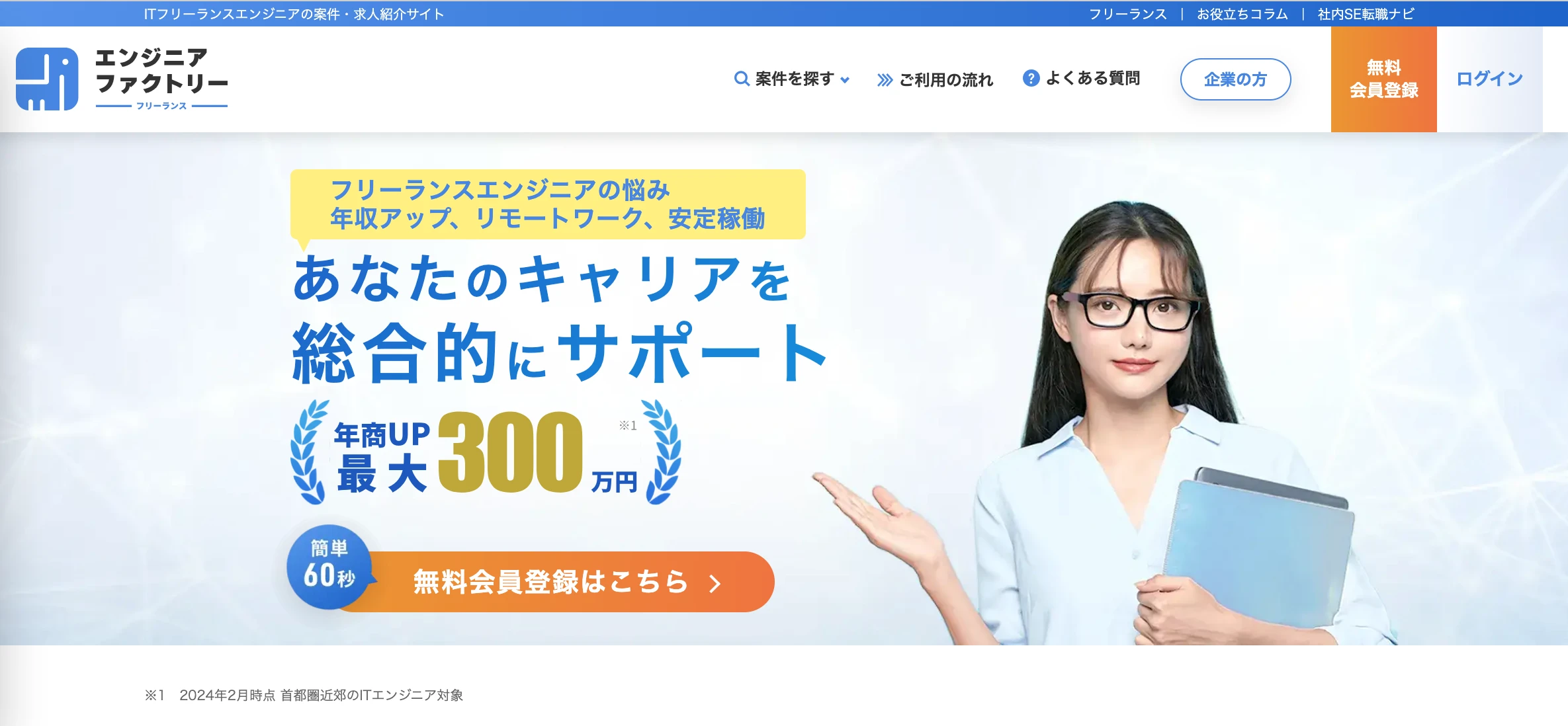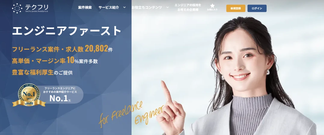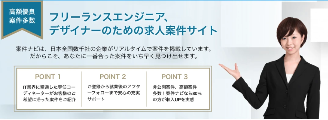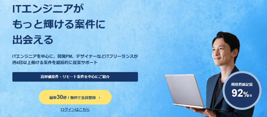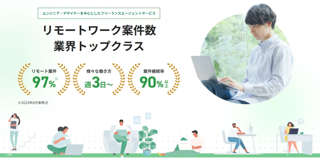 フリーランスであるにもかかわらず、報酬保障サービスや保険補助、経費補助、税務保障などの正社員並みの保障が受けられるという特長があります。案件紹介エリアは東京と大阪が中心です。
