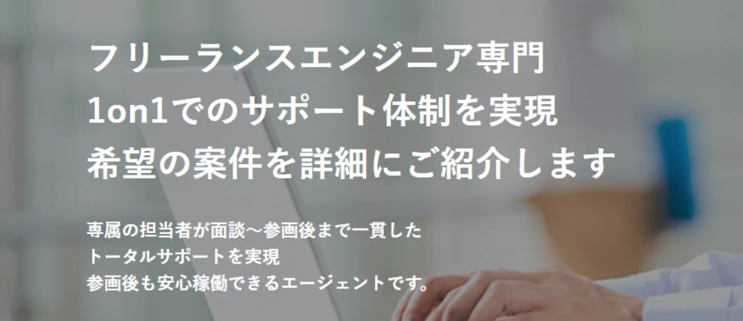 | 福利厚生・サポート内容 | 案件リクエスト機能あり(条件に合致する案件を優先紹介) 面談対策、稼働中フォロー、次回案件の提案などサポート充実 |