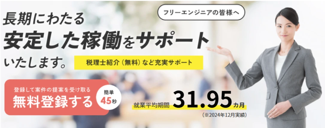 専属の税理士やフィナンシャルプランナーが在籍しており、案件の紹介だけでなく、独立したてのフリーランスエンジニアが困ってしまう税金や保険に関する相談もできます。