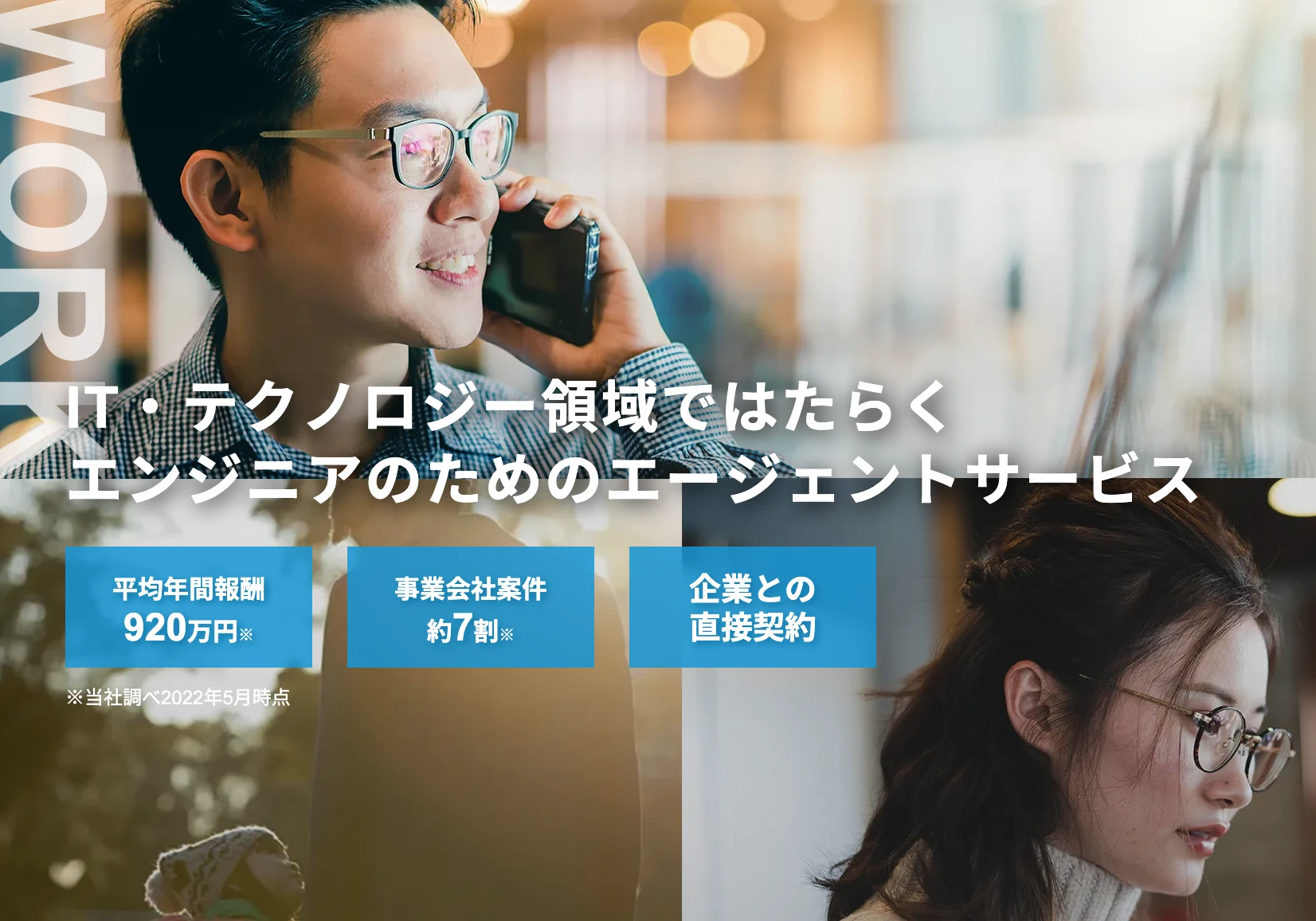 業界や現場に精通したコーディネーターが、1人1人のスキルや希望条件に合った求人の紹介に加え、案件参画までのスケジュールの調整や商談までをサポートしてくれます。