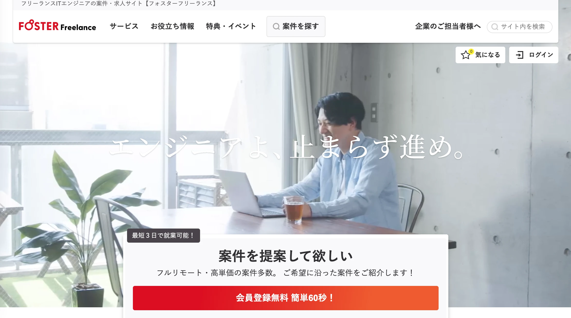 フォスターフリーランスは、25年以上に渡りフリーランスITエンジニアに特化したサービスを提供しているエージェントです。