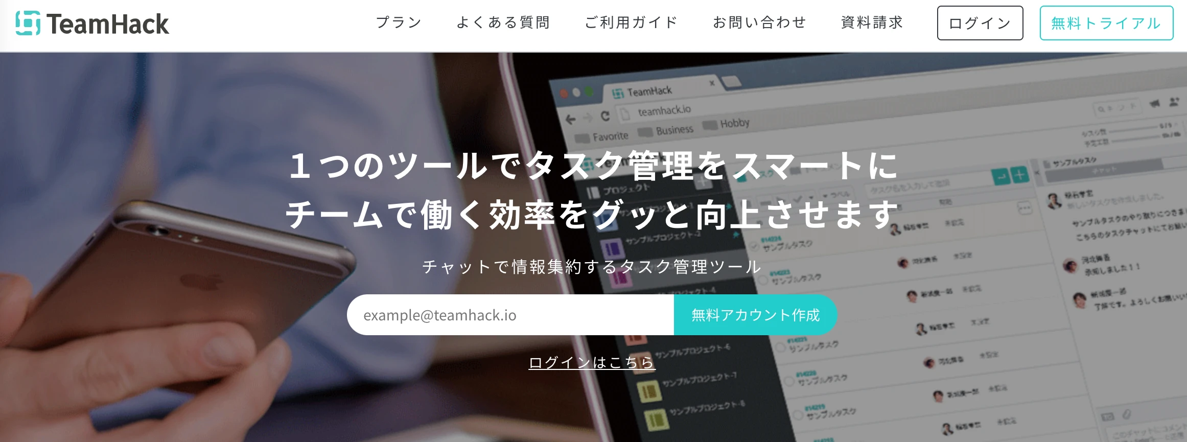 TeamHackはタスク管理とコミュニケーションツールを両立させたサービスです。