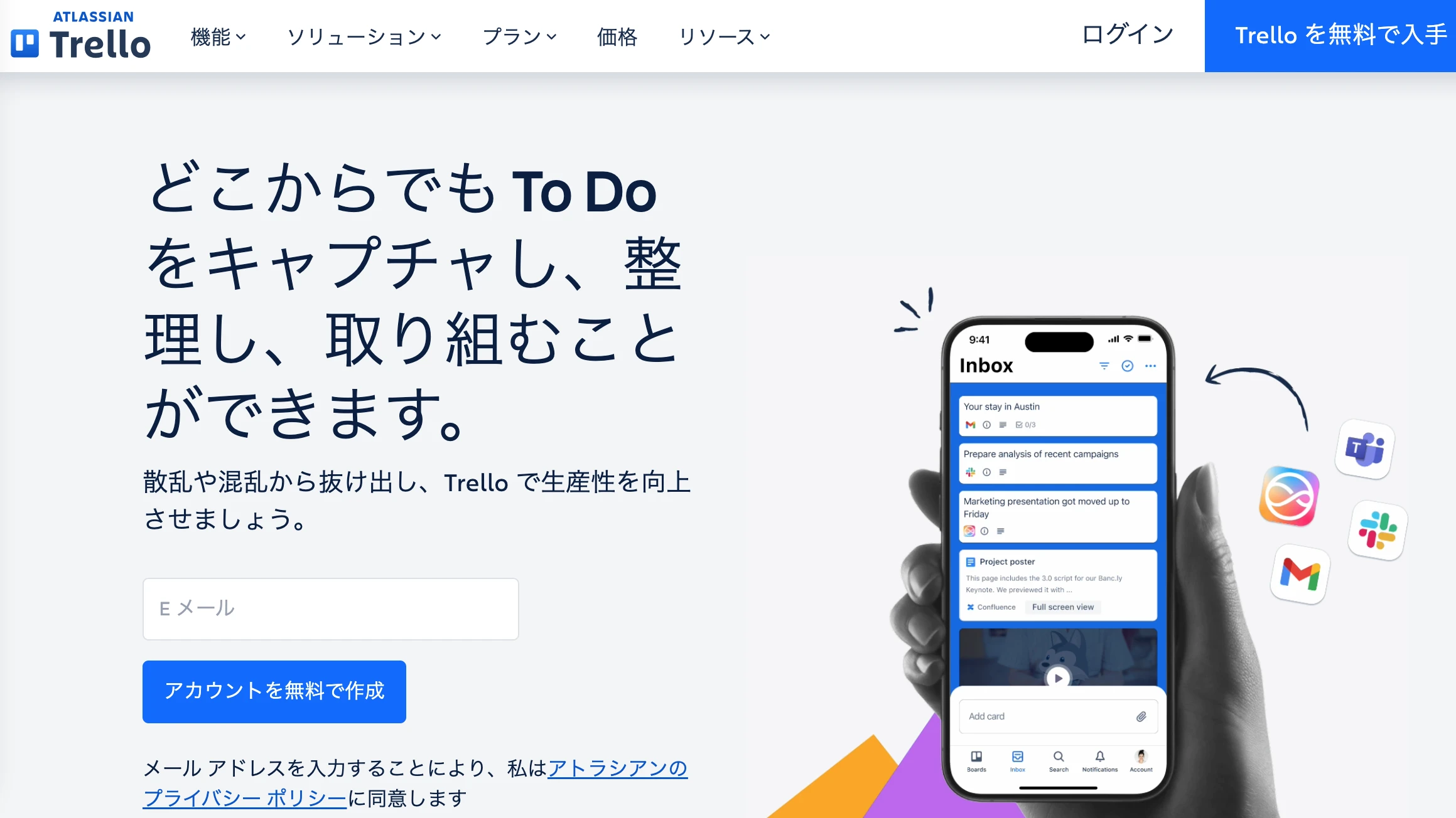 Trelloは、タスクを1つのボードでまとめられる一元管理サービスです。