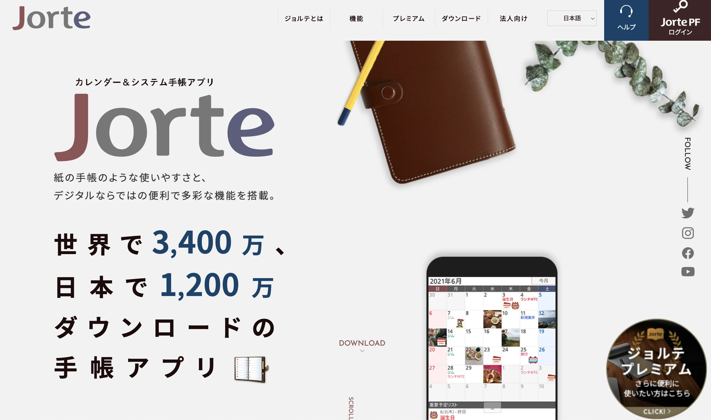 ジョルテは、紙の手帳に近い感覚で予定を管理できたり、着せ替えで自分好みのカスタマイズができたりするスケジュール管理サービスです。