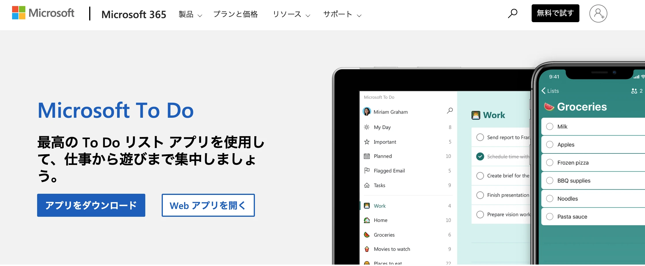 主な機能 | タスク管理 期限設定 Outlook連携 |