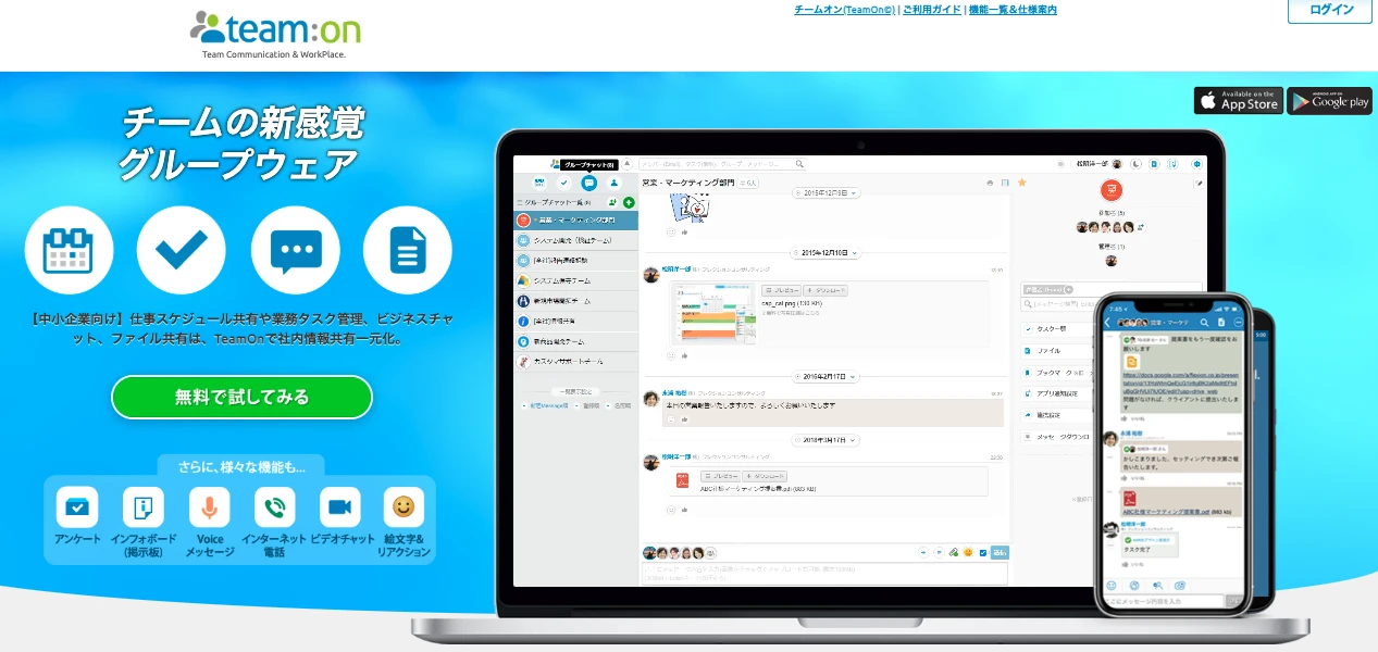 TeamOnはチームでの作業や複数メンバーでスケジュールを共有したい際に便利なサービスです。