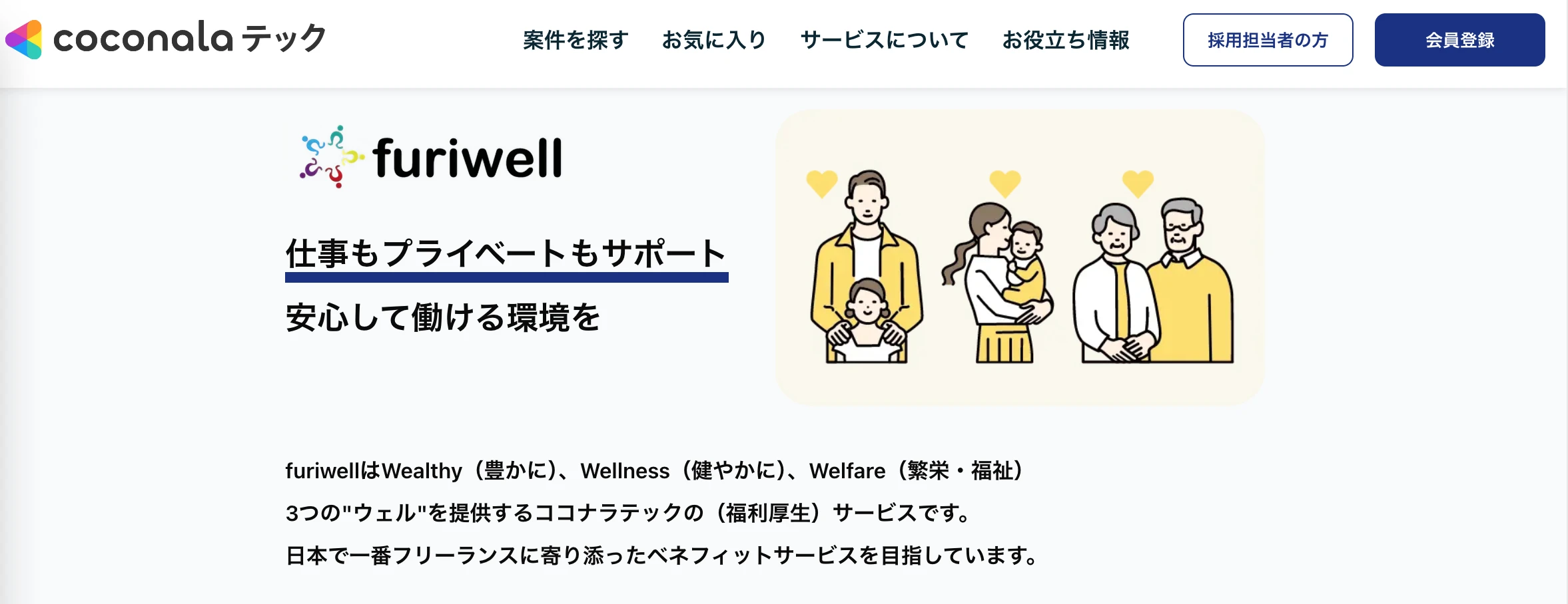 サービス内容 | 福利厚生、キャリア支援、安心保証(各種保険)、つながり支援、法務税務支援、情報配信・解説など |