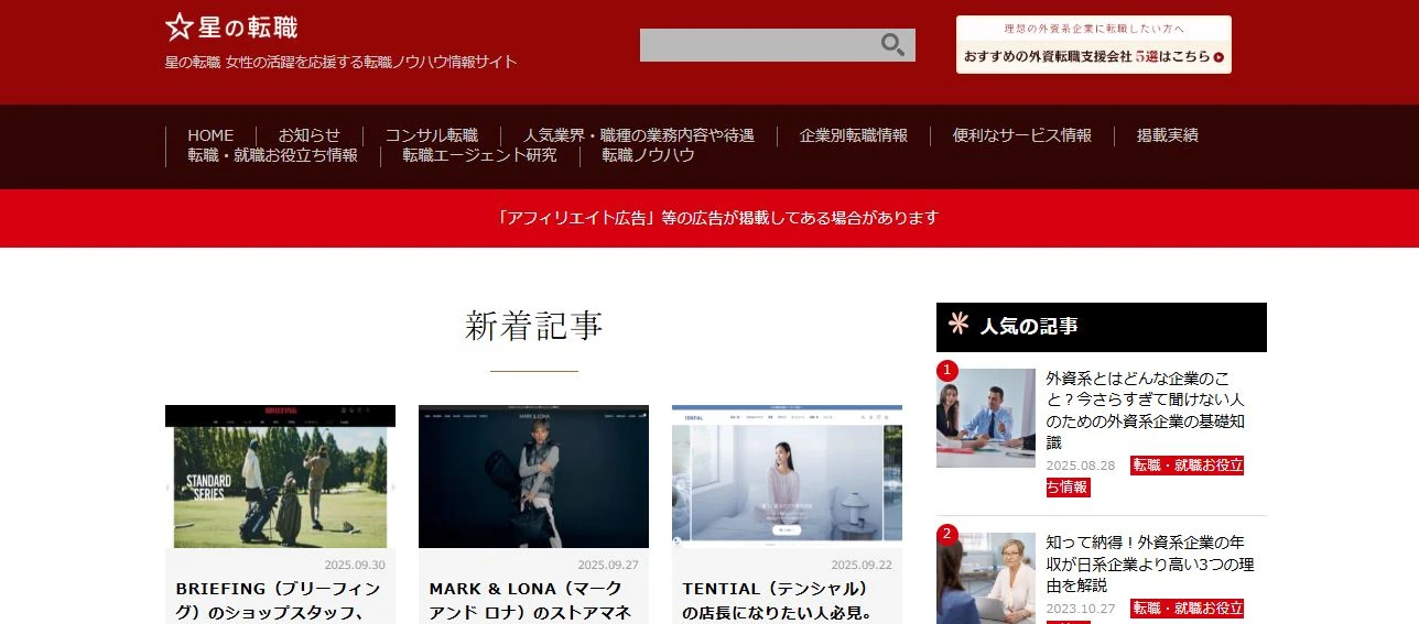 「星の転職」は、女性の活躍を支援する転職ノウハウ情報サイトです。