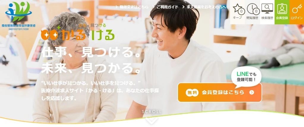 かる・けるは、医療介護の仕事を探せる求人情報サイト。すべてのお仕事情報は、勤務地、年収や月収などの給与、正社員、契約社員、パート・アルバイト、業務委託などの雇用形態、施設のサービス形態といった条件で検索でき、希望に合う求人を簡単に探しやすいのが魅力です。
