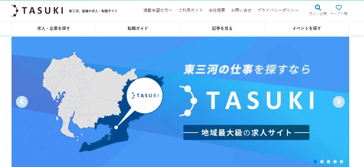 TASUKI(タスキ)は、愛知県東三河地域(豊橋・豊川・蒲郡など)に特化した地域最大級の求人・転職情報サイトです。