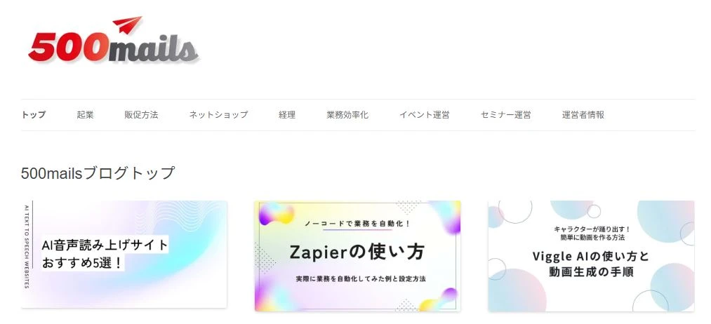 500mailsは、個人やフリーランスのための起業・副業支援サイトです。スキルアップやビジネスに役立つ情報を幅広く発信し、ITツールの活用法や最新のAIツールの使い方、資格取得、副業に関するノウハウを分かりやすく紹介しています。
