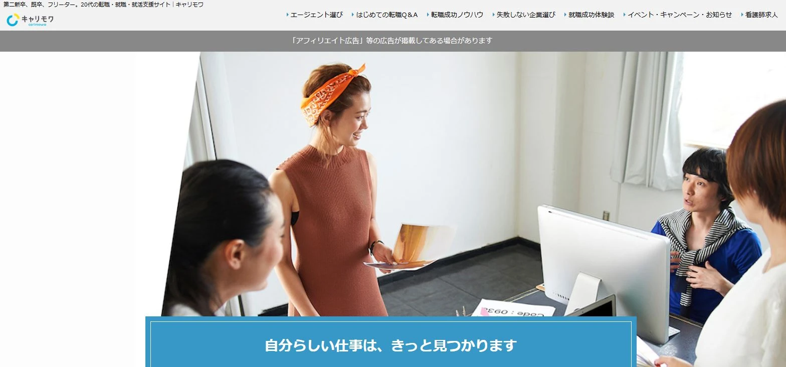 キャリモワは、20代の既卒・第二新卒・フリーター向けの転職・就職支援サイトです。
