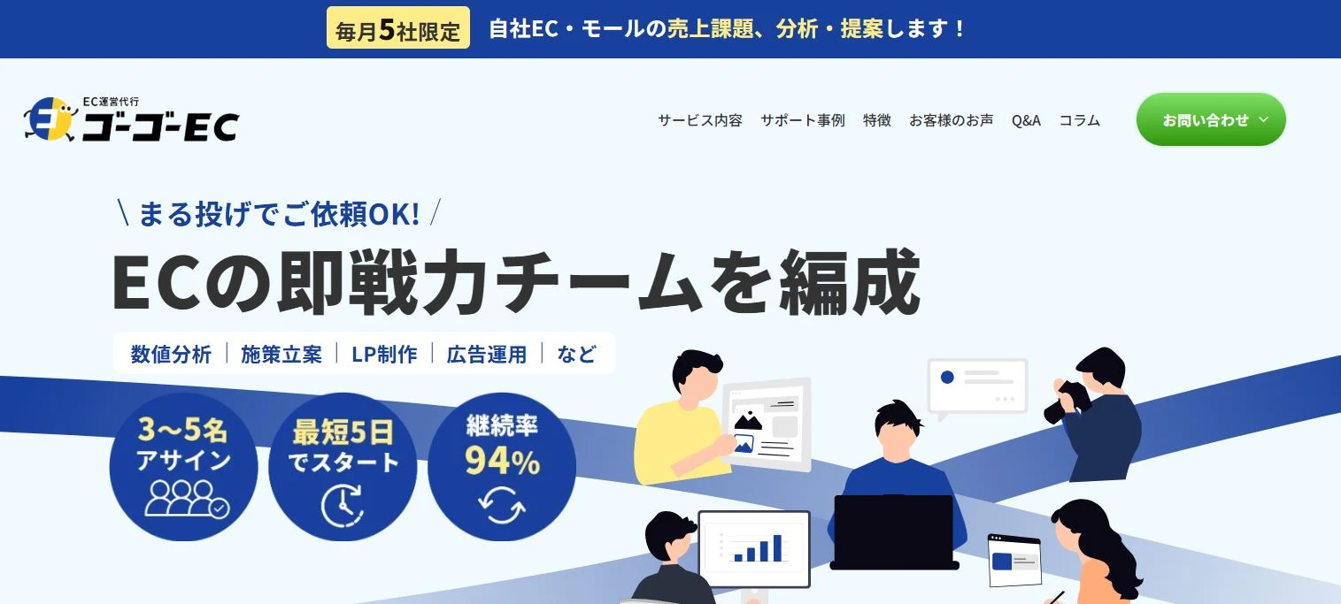 株式会社Oxxxは、楽天・Amazon・自社ECなど幅広いEC事業者向けに、「即戦力チーム」によるEC運営代行サービス「ゴーゴーEC」を提供しています。