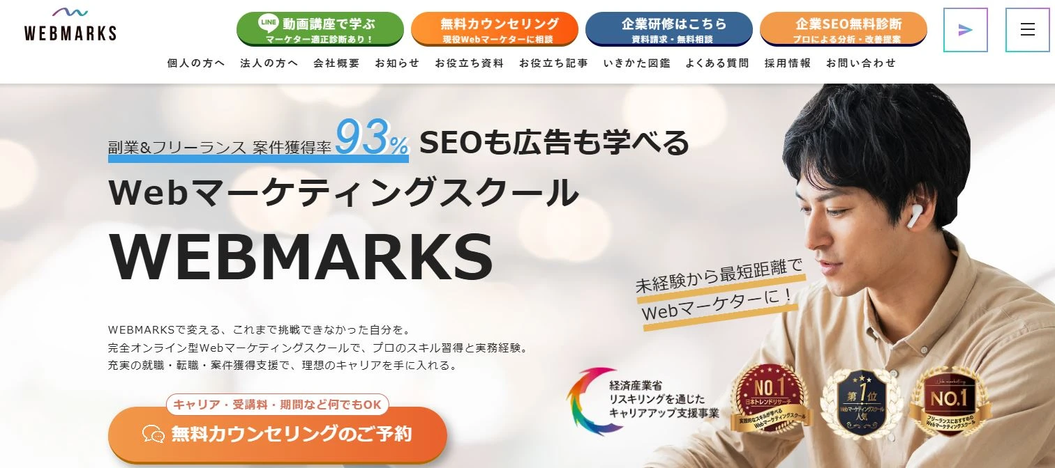 WEBMARKSは、SEOとWeb広告に特化した完全オンライン型のWebマーケティングスクールを運営する企業です。